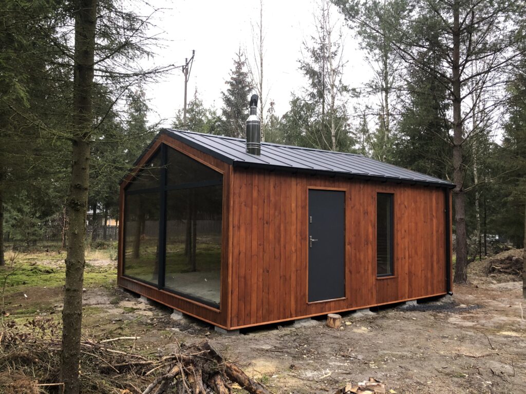 Kiedy my stawialiśmy nasz mały domek modułowy w konstrukcji szkieletowej (rok temu, we wrześniu 2020), ceny były jeszcze sporo niższe. Koszt zależy nie tylko od metrażu, ale także od stanu wykończenia (surowy, surowy zamknięty, deweloperski, czy nawet domek urządzony pod klucz). Po analizie ofert kilku dostawców zdecydowaliśmy się na firmę IMS House, której jeden z gotowych projektów domków zmodyfikowaliśmy, dostosowując go do naszych potrzeb. Wybraliśmy mały domek modułowy w stanie surowym zamkniętym, co kosztowało nas ok. 60 tysięcy złotych. Z tego, co się orientujemy, to dzisiaj, ponad rok później, ceny wynoszą co najmniej +30%, u wszystkich producentów domków modułowych. Współpraca z firmą IMS nie należała do najłatwiejszych, przede wszystkim ze względu na komunikację, ale, koniec końców, domek stoi i ma się całkiem dobrze.