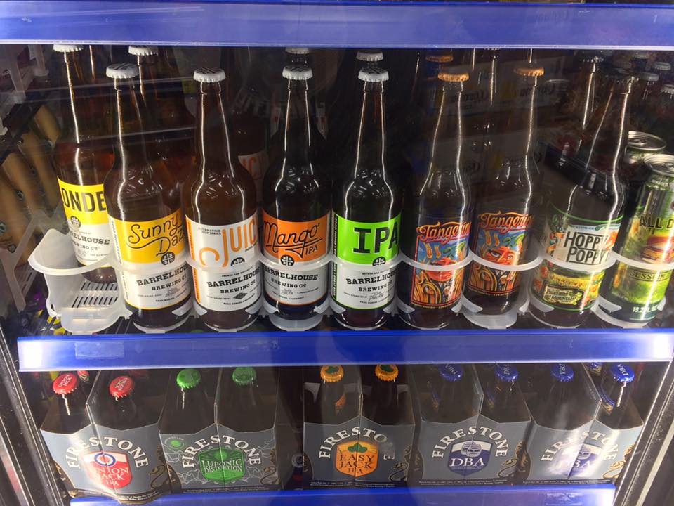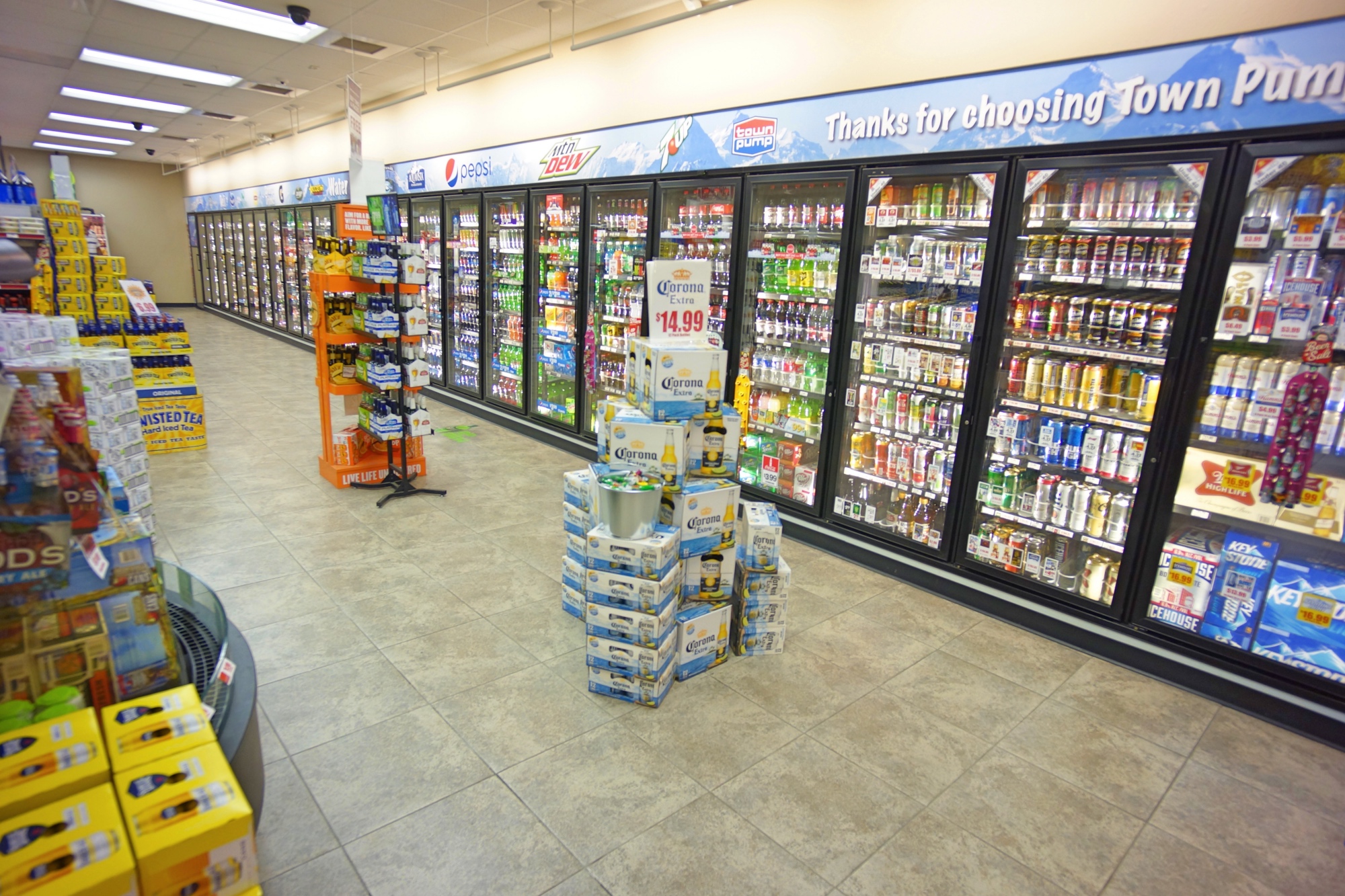 Zdjęcie przedstawia około 1/3 napojów do kupienia na tej stacji.