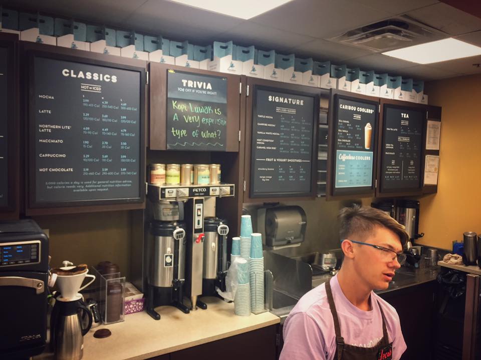 W tej kawiarni na jednym z truckstopów za odpowiedź na quizowe pytanie otrzymujemy symboliczną zniżkę (10 centów) na kupno, niestety fatalnej (jak prawie wszędzie), przelewowej kawy.